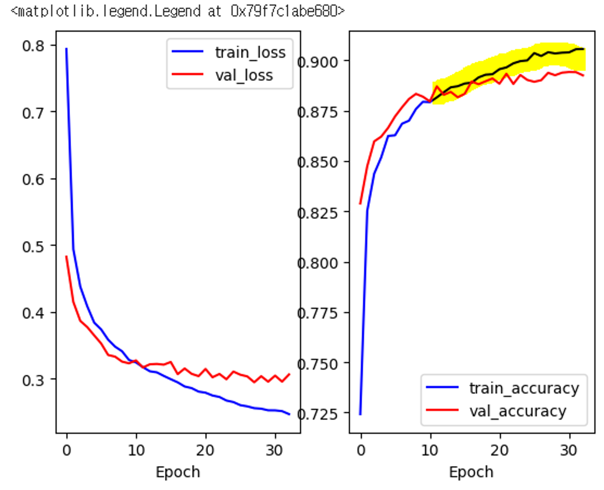 epoch가 50번을 다 돌지 않고 중간에 설정한 기준이 종료되는 시점에서 학습을 종료한 것을 볼 수 있다.
